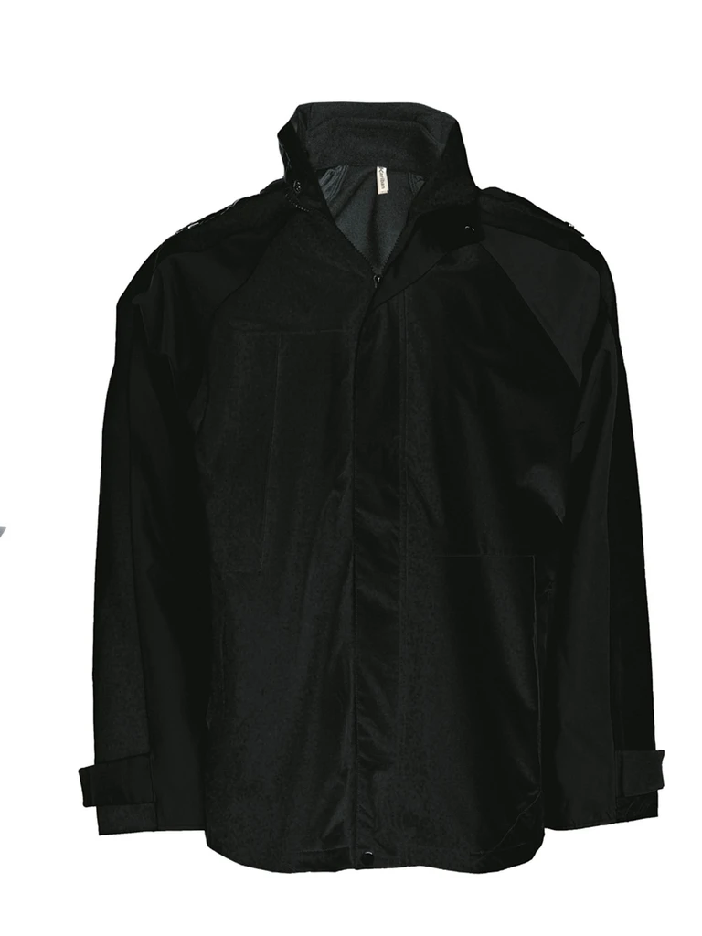 Dvojvrstvá bunda - vnitřní vyrobena z fleecu a je odepínatelná, 2 boční kapsy; vnější má vysoký fleecový límec s klopou na cvočky, zip po celé délce, 4 přední kapsy, nastavitelné manžety, odnímatelná kapuce, stahovací šňůrka kolem spodního lemu,