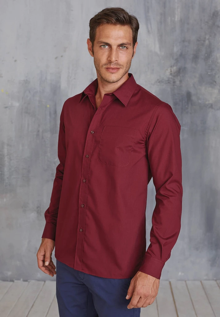Materiál nenáročný na údržbu, náprsní kapsa nalevo, knoflíčky ve stejné barvě jako košile, 2 náhradní knoflíčky, dvojitě složené švy, nastavitelná manžeta.