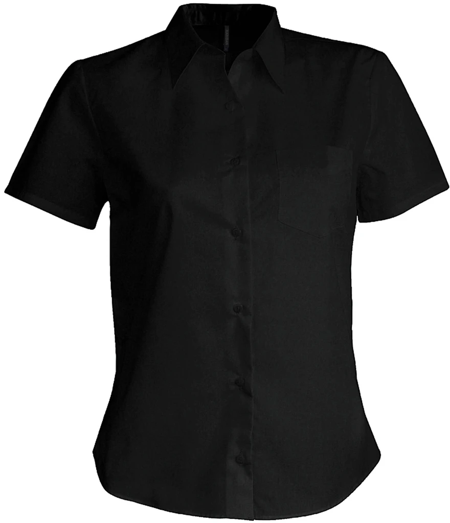 Materiál nenáročný na údržbu, nezpevněný límeček, náprsní kapsa nalevo, knoflíčky ve stejné barvě jako košile, jeden náhradní knoflíček, tvarovaný lem.