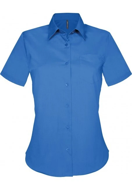 Materiál nenáročný na údržbu, nezpevněný límeček, náprsní kapsa nalevo, knoflíčky ve stejné barvě jako košile, jeden náhradní knoflíček, tvarovaný lem.
