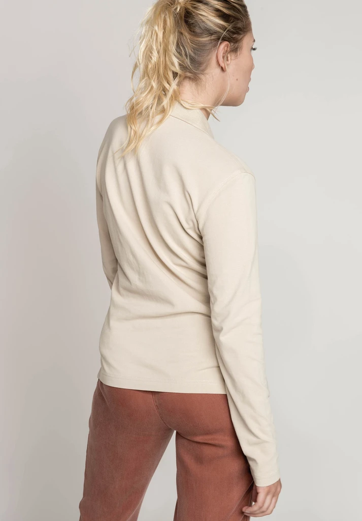 Vyztužení krku a bočních rozparků v kontrastním odstínu "oxford grey", dvojité prošívané zakončení, elastické vyztužené žebrované manžety, zapínání na 2 knoflíčky.
