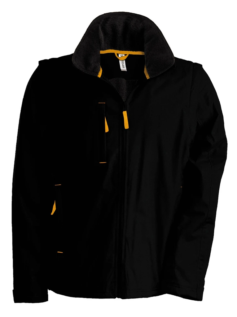 Zip po celé délce, 3 přední kapsy, 2 vnitřní kapsy, 1 vnitřní kapsa na mobilní telefon, odnímatelné rukávy, nastavitelné manžety, skrytá kapuce v límci, elastická šňůrka kolem spodního lemu.