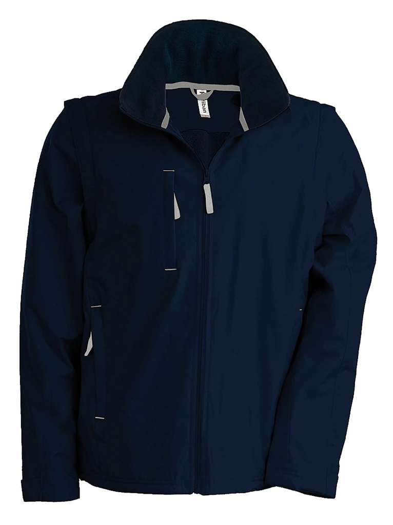 Zip po celé délce, 3 přední kapsy, 2 vnitřní kapsy, 1 vnitřní kapsa na mobilní telefon, odnímatelné rukávy, nastavitelné manžety, skrytá kapuce v límci, elastická šňůrka kolem spodního lemu.