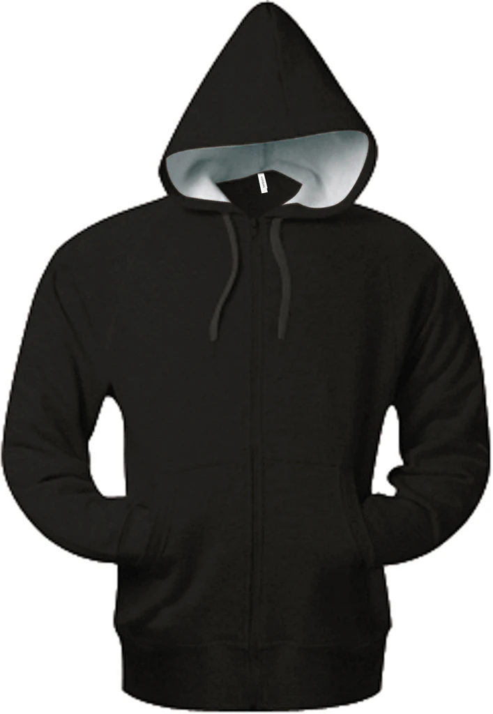 Broušený fleece, klokaní kapsy, zapínání na YKK® zip, vsazené rukávy, vnitřek kapuce v odstínu "heather grey", stahovací šňůrka kolem kapuce, žebrované manžety a spodní lem.