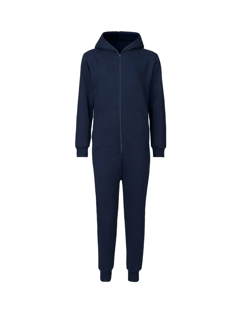 Overal s kapucí, klokaní kapsou a dvojitým posuvným YKK zipem vpředu. S dvojitou podšívkou kapuce, boční kapsou na zip YKK a dvouvrstvými žebrovanými manžetami z elastanu na rukávech a nohavicích. Pohodlná vysoká hmotnost s měkkým kartáčovaným vnitřkem. Vyrobeno z prstencové česané bavlny o gramáži 300 g/m2.