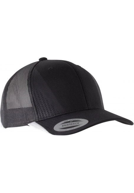 Zaoblený kšilt. Vyztužení pro udržení tvaru. "Flexfit® Cool & Dry technology" pro větší komfort a optimální absorpci vlhkosti. Po stranách síťovina z polyamidu. Zapínání na plastový řemínek.