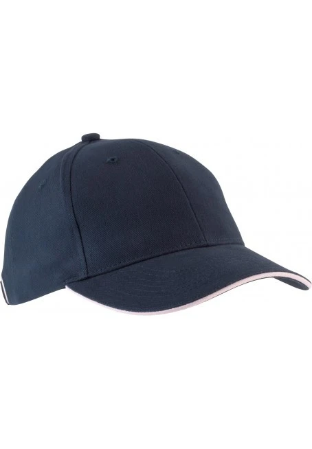 Kontrastní lemování na kšiltu. Nastavitelné zapínání na kovovou sponu.