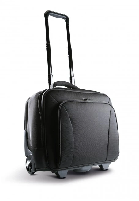 Tuhá konstrukce, ultra lehký pojízdný systém, přední organizovaná kapsa, hlavní přihrádka s vnitřní polstrovánou kapsou na notebook do velikosti 15", držák na dokumenty, stabilizační nohy a spodní držadlo, na zadní straně pás, SBS zipy.