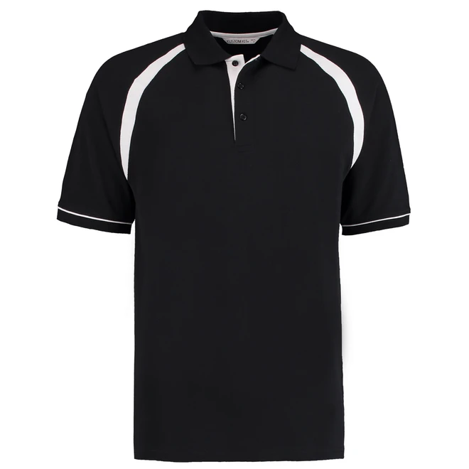 Výztužná páska za krkem v kontrastní barvě, žebrovaný límec, léga s 3 knoflíky v kontrastní barvě, raglánové rukávy s kontrastními pruhy, dekorativní proužky v kontrastní barvě na rukávech, boční rozparky zesílené látkou s úpletem "rybí kostra".