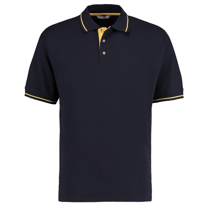 Léga s 3 knoflíky v kontrastní barvě, sedlo, výztužná páska v kontrastní barvě, ozdobné proužky na límečku v kontrastní barvě, boční rozparky.