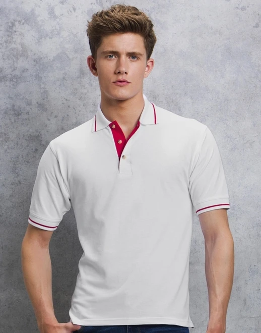 Léga s 3 knoflíky v kontrastní barvě, sedlo, výztužná páska v kontrastní barvě, ozdobné proužky na límečku v kontrastní barvě, boční rozparky.
