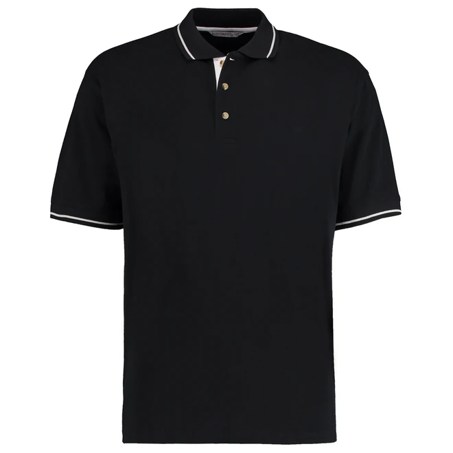 Léga s 3 knoflíky v kontrastní barvě, sedlo, výztužná páska v kontrastní barvě, ozdobné proužky na límečku v kontrastní barvě, boční rozparky.