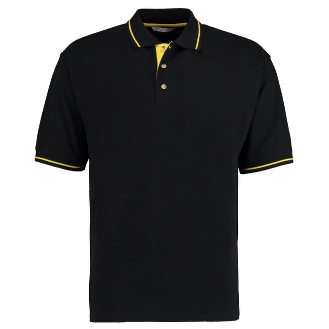 Léga s 3 knoflíky v kontrastní barvě, sedlo, výztužná páska v kontrastní barvě, ozdobné proužky na límečku v kontrastní barvě, boční rozparky.