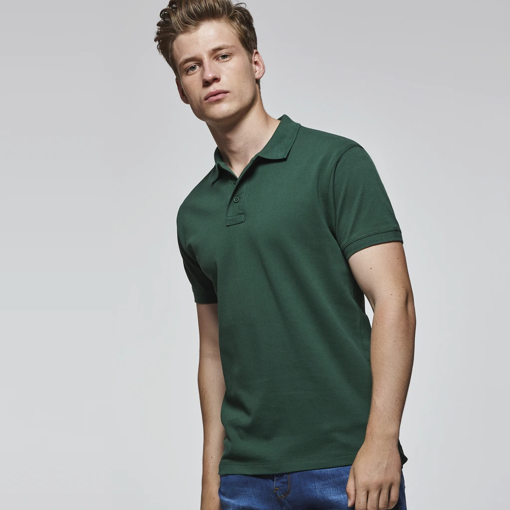 Krátký rukáv, velmi pohodlná, 3 knoflíky ve stejné barvě, žebrovaný límeček a manžety, zpevněné skryté švy na průkrčníku, prodloužený zadní díl, dvojité švy na ramenou, rukávech a v pase, odnímatelná cedulka, povrchová úprava Roly.