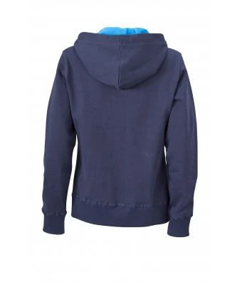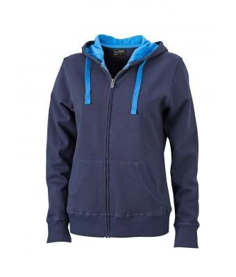 Dlouhý zip, vnitřek kapuce a šňůry v kontrastní barvě