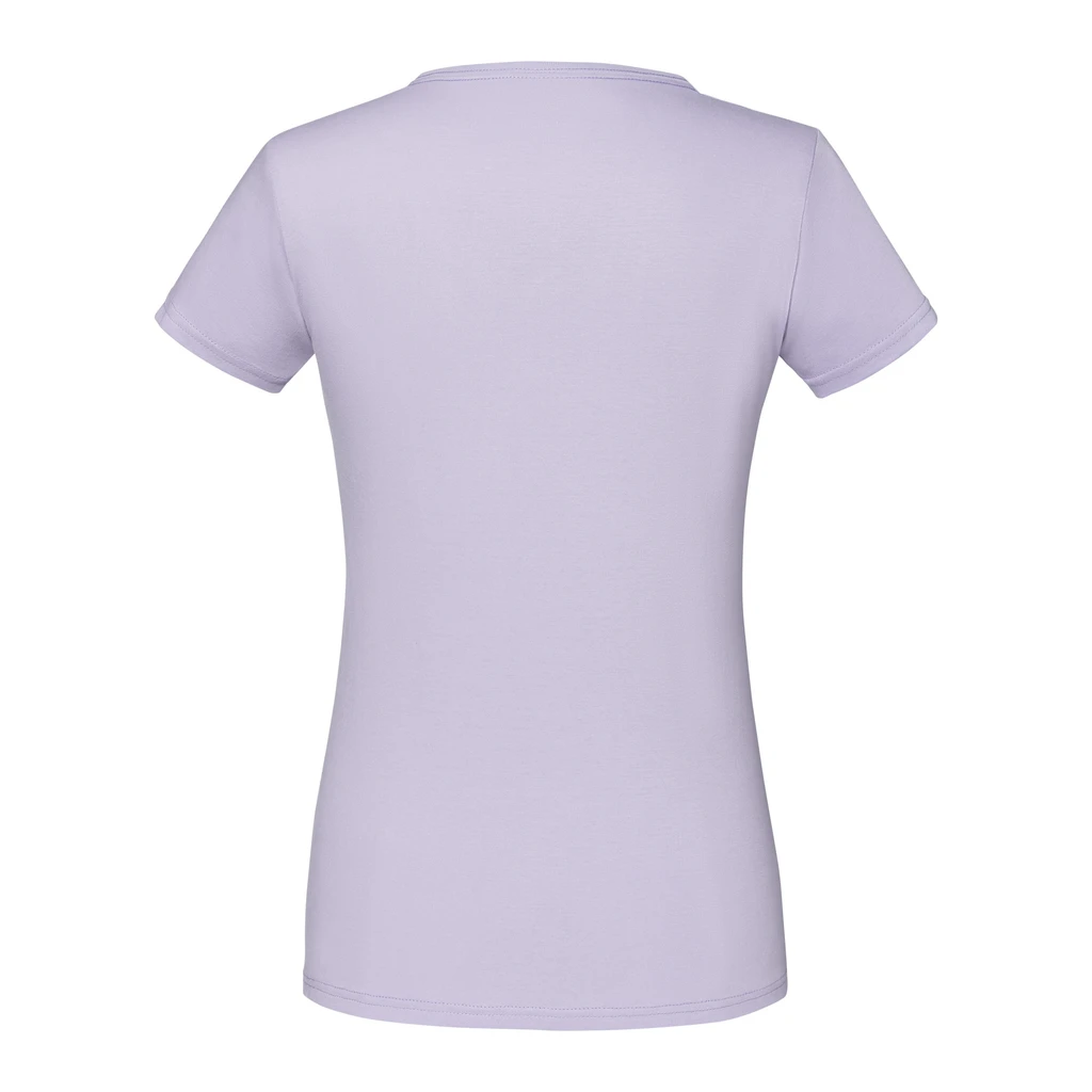 Česaná prstencová bavlna, extra hebká na dotek, dámský přiléhavý střih, boční švy, zpevňující páska za krkem, úzký žebrovaný výstřih do "V" 1x1, odstranitelný štítek "Tear Away" za krkem; Certifikáty: STANDARD 100 by OEKO-TEX®; WRAP