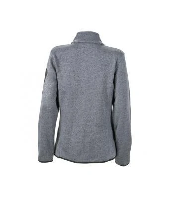 Melírový vzhled, límec se stojáčkem, zvenku pletený vzhled