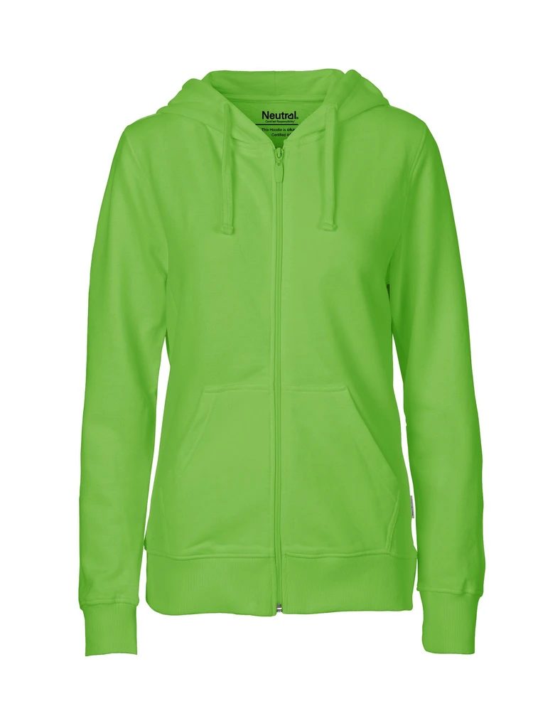 Materiál: 100% bio bavlna "Fairtrade Cotton", fleece, vnitřní strana počesaná; Gramáž: 300 g/m²; Dámský střih, styl "casual", dvojitá kapuce. Zapínání vpředu na dlouhý zip YKK. Zpevňující páska za krkem, klokaní kapsa. Kapuce s dvojitým lemováním a plochými šňůrkami na stažení. Žebrované manžety na rukávech a v pase. Ušito z kvalitní prstencové bavlny; Certifikáty: OEKO-TEX® STANDARD 100, 100% CERTIFIED ORGANIC COTTON, FAIR WEAR, EU ECOLABEL, SA8000, NEUTRAL® RESPONSIBILITY