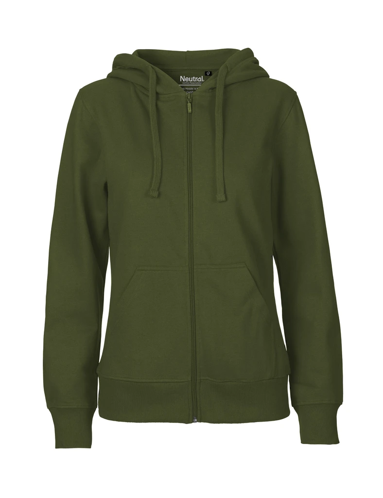 Materiál: 100% bio bavlna "Fairtrade Cotton", fleece, vnitřní strana počesaná; Gramáž: 300 g/m²; Dámský střih, styl "casual", dvojitá kapuce. Zapínání vpředu na dlouhý zip YKK. Zpevňující páska za krkem, klokaní kapsa. Kapuce s dvojitým lemováním a plochými šňůrkami na stažení. Žebrované manžety na rukávech a v pase. Ušito z kvalitní prstencové bavlny; Certifikáty: OEKO-TEX® STANDARD 100, 100% CERTIFIED ORGANIC COTTON, FAIR WEAR, EU ECOLABEL, SA8000, NEUTRAL® RESPONSIBILITY
