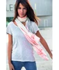 Moderní žakárový vzor, měkký a příjemný materiál na nošení, kontrastní pruhy, rolované lemy na podélných okrajích, jemné třásně na koncích.