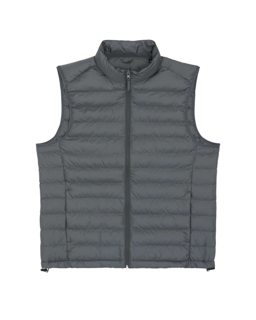 Materiál: 100% recyklovaný polyester, DWR bez fluoru; Gramáž: 75g/m²; Přiléhavý střih, bez rukávů, vysoký límec, nylonový zip uprostřed vpředu, kapsy na zip, zavazování elastickou páskou v průramku, plně prošívaná, boční panely pro lepší tvar, vnitřní vázané švy, spodní lem s nastavitelnou plastovou zarážkou a elastickou šňůrkou; Certifikáty: Global Recycled Standard (GRS), Fair Wair, STANDARD 100 by OEKO-TEX®, Peta - Approved VEGAN
