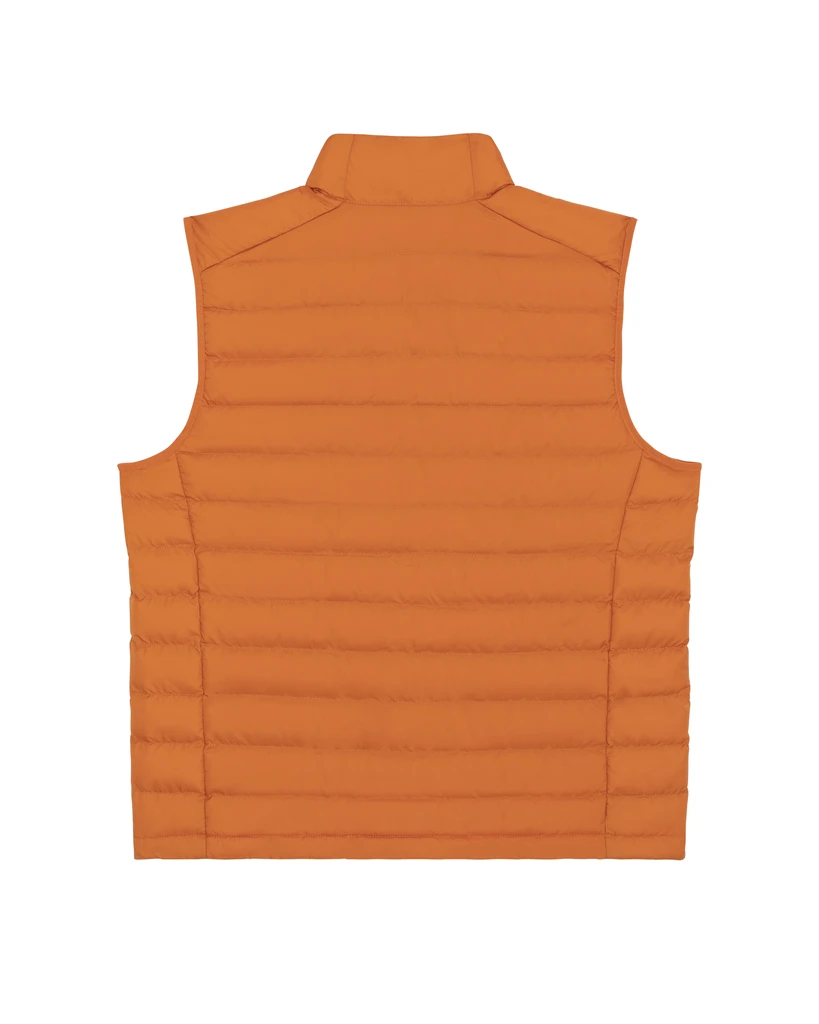 Materiál: 100% recyklovaný polyester, DWR bez fluoru; Gramáž: 75g/m²; Přiléhavý střih, bez rukávů, vysoký límec, nylonový zip uprostřed vpředu, kapsy na zip, zavazování elastickou páskou v průramku, plně prošívaná, boční panely pro lepší tvar, vnitřní vázané švy, spodní lem s nastavitelnou plastovou zarážkou a elastickou šňůrkou; Certifikáty: Global Recycled Standard (GRS), Fair Wair, STANDARD 100 by OEKO-TEX®, Peta - Approved VEGAN
