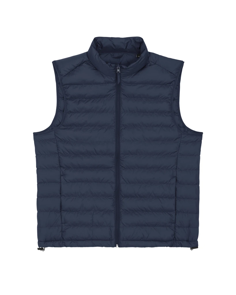 Materiál: 100% recyklovaný polyester, DWR bez fluoru; Gramáž: 75g/m²; Přiléhavý střih, bez rukávů, vysoký límec, nylonový zip uprostřed vpředu, kapsy na zip, zavazování elastickou páskou v průramku, plně prošívaná, boční panely pro lepší tvar, vnitřní vázané švy, spodní lem s nastavitelnou plastovou zarážkou a elastickou šňůrkou; Certifikáty: Global Recycled Standard (GRS), Fair Wair, STANDARD 100 by OEKO-TEX®, Peta - Approved VEGAN