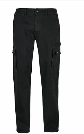 Materiál: Kepr 300 - 98 % bavlna - 2 % elastan; Moderní střih, strečový kepr, elastický pas s vyztuženými poutky na pásek, zip a kovový knoflík, 2 italské kapsy, 2 boční našité kapsy s klopou a druky, 2 zadní lemované kapsy s knoflíkovou dírkou, odtrhávací štítek