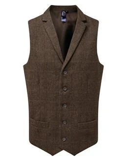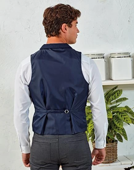 Atraktivní, všestranná vesta pro muže. Styl s klopovým límcem, který vede do hlavní části vesty se zapínáním na pět knoflíků. Vzor rybí kosti byl dosažen spojením dvou barevných přízí. Tato vesta je na spodní straně a na rubu plně podšitá, kde je přezka, kterou si uživatel může přizpůsobit.