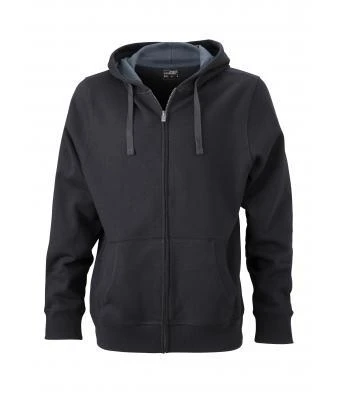 Dlouhý zip, vnitřek kapuce a šňůry v kontrastní barvě