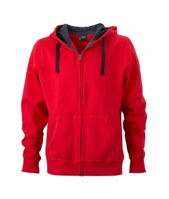 Dlouhý zip, vnitřek kapuce a šňůry v kontrastní barvě