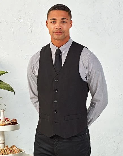 Pánská vesta s pěti knoflíky a dvěma funkčními kapsami na hodinky tvoří opravdu stylový kousek pohostinského oblečení. Tato vesta je plně podšitá a je dodávána se saténovým zadním dílem, kde je nastavitelná přezka pro přiléhavější vzhled.