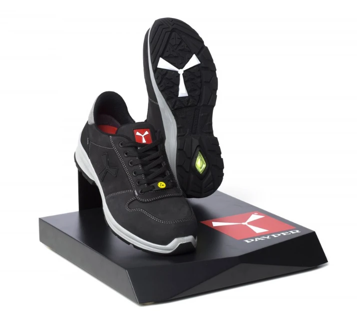 Nízká bezpečnostní pánská obuv, svršek z voděodolné a prodyšné kůže, vnitřní prodyšná podšívka (po celém vnitřním povrchu) odolná proti oděru, 6+6 nekovových oček, chránič podpatku z kůže pampas vybavený reflexní vložkou, hliníková tužinka ve špičce litá pod tlakem, vyjímatelná ortopedická vložka Ortholite X40 016 ESD, certifikovaná stélka z textilní fólie proti propíchnutí, proti torzní výztuž shank, výztuž pod špičkou ve tvaru koňské podkovy, mezipodešev z ultralehkého polyuretanu ESD, tlumič nárazů MASTER BALANCE z polyetheru PU o vysoké houževnatosti a vyvážené hustotě, podrážka XTRAIL GRIP z TPU ESD s chráničem