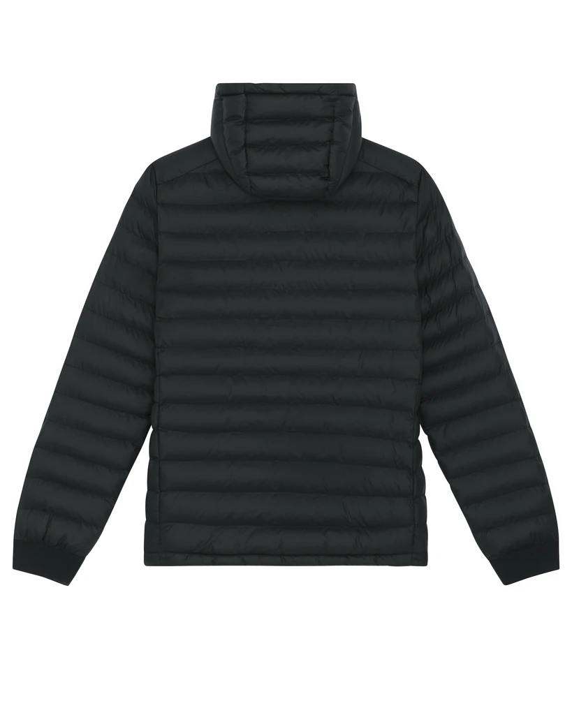 Materiál: 100% recyklovaný polyester, DWR bez fluoru; Gramáž: 75g/m²; Přiléhavý střih, vsazené rukávy, vysoký límec s odnímatelnou kapucí a skrytými patentky z matného kovu, zapínání kapuce a spodní lem s nastavitelnou plastovou zarážkou a elastickou šňůrkou, reverzní nylonový zip vpředu uprostřed, průhmatové kapsy na zip s přídavným stahovákem, celoprošívaná, boční panely pro lepší tvar, 1x1 žebrování u lemu rukávů, uvnitř vázané švy; Certifikáty: Global Recycled Standard (GRS), Fair Wair, STANDARD 100 by OEKO-TEX®, Peta - Approved VEGAN