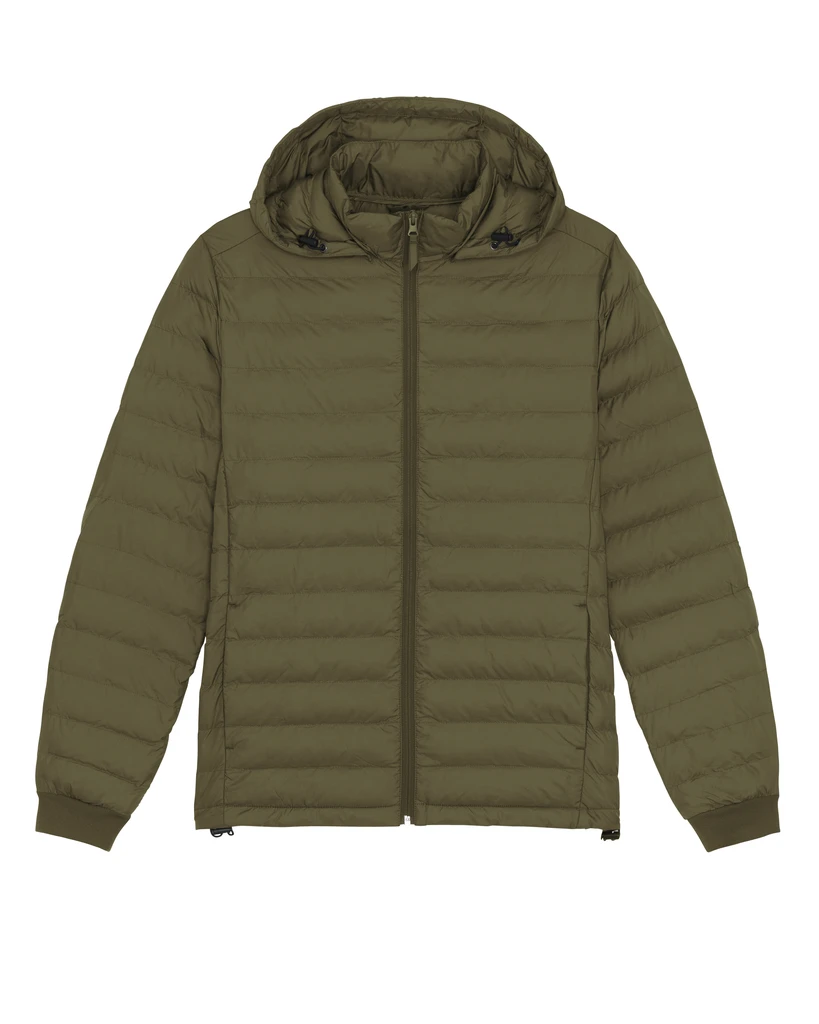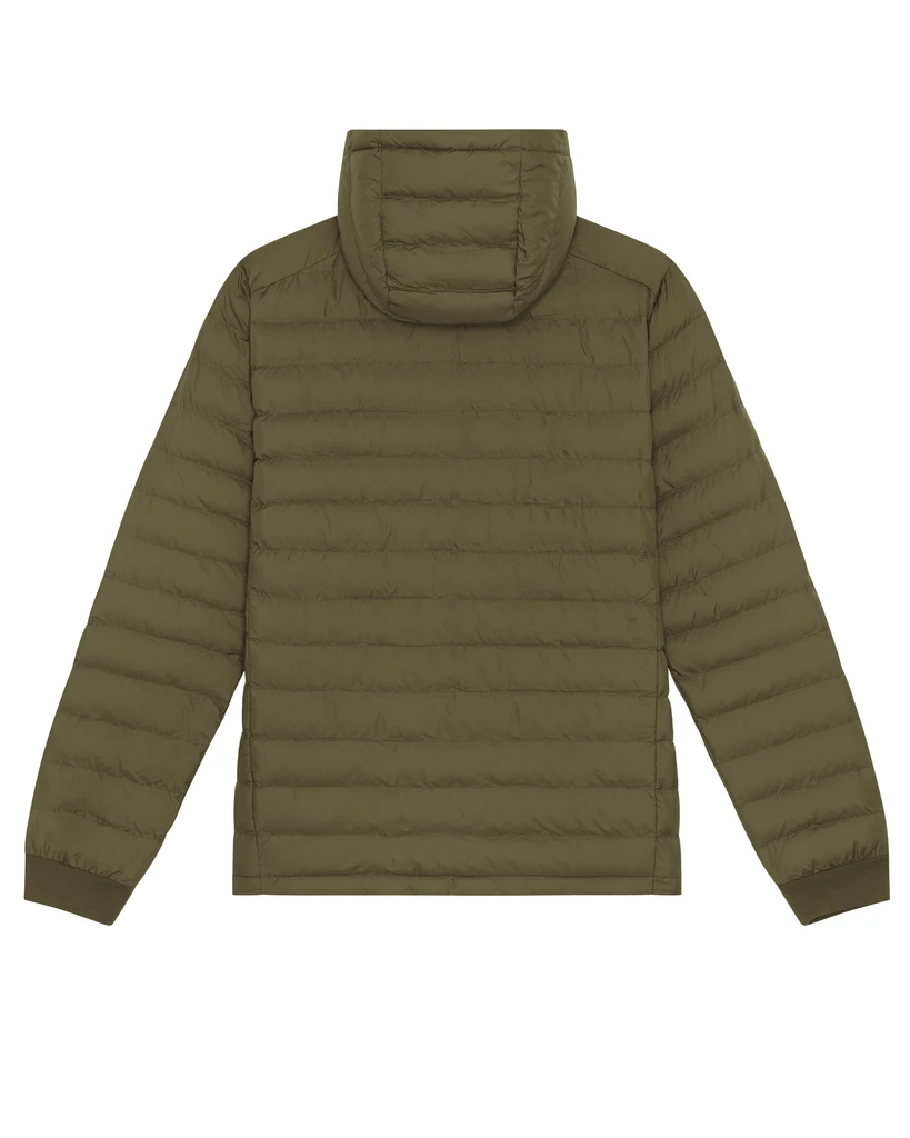 Materiál: 100% recyklovaný polyester, DWR bez fluoru; Gramáž: 75g/m²; Přiléhavý střih, vsazené rukávy, vysoký límec s odnímatelnou kapucí a skrytými patentky z matného kovu, zapínání kapuce a spodní lem s nastavitelnou plastovou zarážkou a elastickou šňůrkou, reverzní nylonový zip vpředu uprostřed, průhmatové kapsy na zip s přídavným stahovákem, celoprošívaná, boční panely pro lepší tvar, 1x1 žebrování u lemu rukávů, uvnitř vázané švy; Certifikáty: Global Recycled Standard (GRS), Fair Wair, STANDARD 100 by OEKO-TEX®, Peta - Approved VEGAN