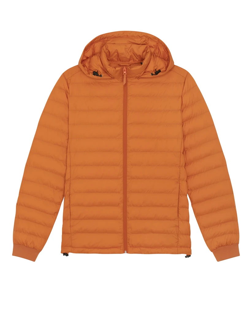 Materiál: 100% recyklovaný polyester, DWR bez fluoru; Gramáž: 75g/m²; Přiléhavý střih, vsazené rukávy, vysoký límec s odnímatelnou kapucí a skrytými patentky z matného kovu, zapínání kapuce a spodní lem s nastavitelnou plastovou zarážkou a elastickou šňůrkou, reverzní nylonový zip vpředu uprostřed, průhmatové kapsy na zip s přídavným stahovákem, celoprošívaná, boční panely pro lepší tvar, 1x1 žebrování u lemu rukávů, uvnitř vázané švy; Certifikáty: Global Recycled Standard (GRS), Fair Wair, STANDARD 100 by OEKO-TEX®, Peta - Approved VEGAN