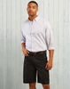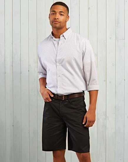 Tyto pánské chino šortky vycházejí z našich oblíbených chino džínů a mají kryté zapínání na zip a knoflík v pase. V pase poutka pro usnadnění pásku, dvě boční kapsy s nýtovým detailem a dvě našité kapsy na zadní straně. Tyto chino šortky zakončené dvojitým otočeným lemem jsou skvělou volbou pro teplejší měsíce a nabízejí ležérnější a hravější přístup k firemnímu oblékání. Dotek elastanu v látce poskytuje prvek roztažení pro maximální pohodlí.