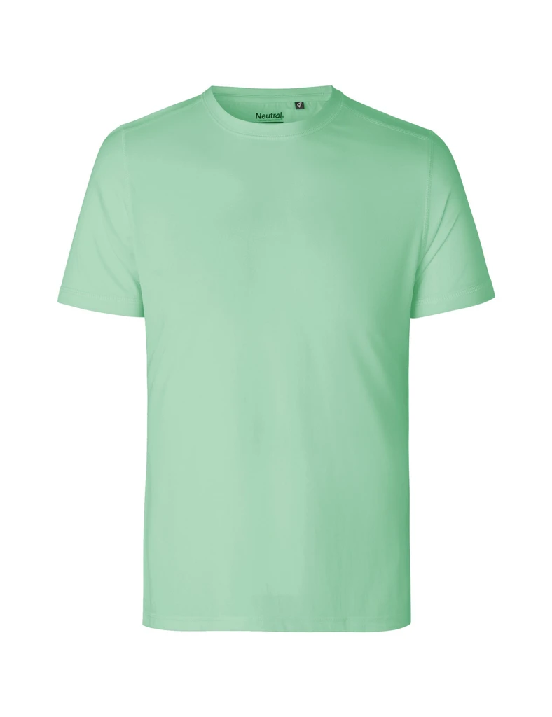 Materiál: 100% recyklovaný polyester, úplet z jednolícního žerzeje; Gramáž: 155 g/m²; Mírně projmutý střih, zejména v oblasti ramen a rukávů. Kulatý výstřih, žebrovaný lem kolem krku. Zpevňující páska za krkem, ploché švy; Certifikáty: EU ECOLABEL, SA8000, NEUTRAL® RESPONSIBILITY, OEKO-TEX, NEUTRAL® PERFORMANCE WEAR