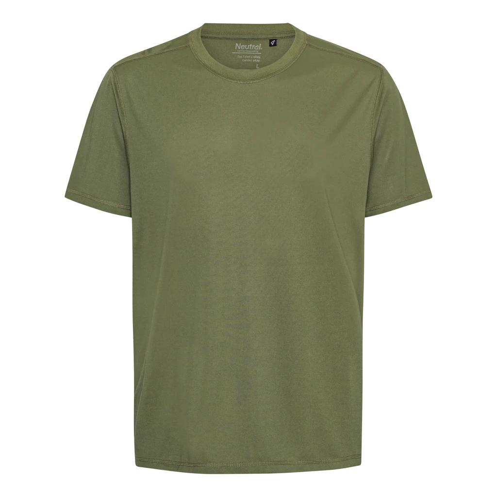 Materiál: 100% recyklovaný polyester, úplet z jednolícního žerzeje; Gramáž: 155 g/m²; Mírně projmutý střih, zejména v oblasti ramen a rukávů. Kulatý výstřih, žebrovaný lem kolem krku. Zpevňující páska za krkem, ploché švy; Certifikáty: EU ECOLABEL, SA8000, NEUTRAL® RESPONSIBILITY, OEKO-TEX, NEUTRAL® PERFORMANCE WEAR