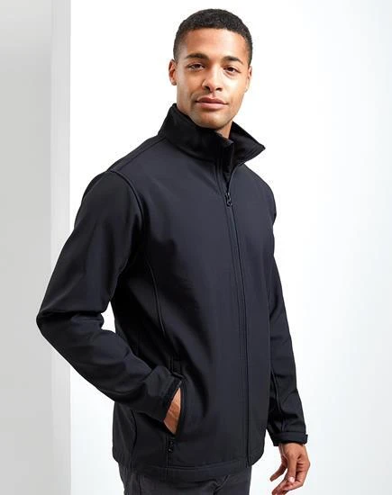 Pánská dvouvrstvá softshellová bunda nesoucí ochrannou známku Premier's Windchecker® pro odolnost proti větru a vodě skrz látku. Tato dvouvrstvá softshellová bunda se zipem vyrobená ze 100% recyklovaného polyesteru má na manžetách pásky se suchým zipem pro úpravu kolem zápěstí. Má dvě praktické boční kapsy na zip a elastický lem se stahovací šňůrkou. Skvělá univerzální vnější vrstva pro běžné i firemní oblékání pro muže.