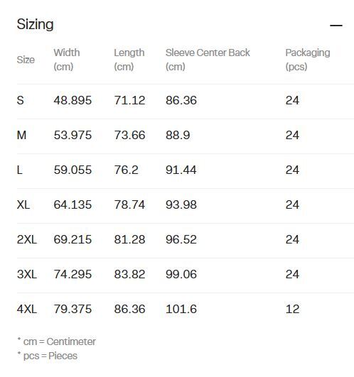 | Velikost | S, M, L, XL, 2XL, 3XL |
