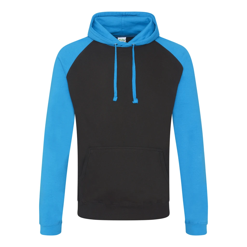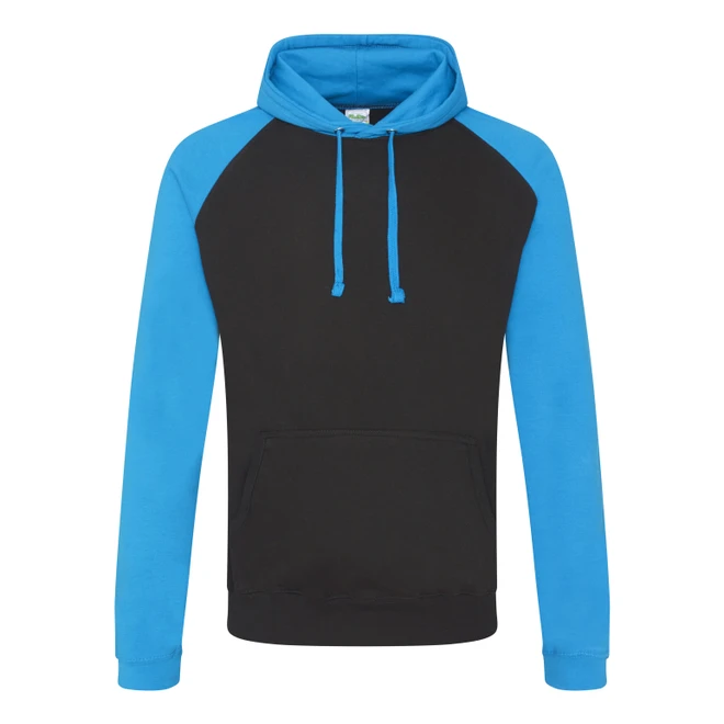 Dvojité prošití detailů, kontrastní raglánové rukávy, kapuce z dvojité vrstvy látky, ploché šňůrky v kontrastní barvě, klokaní kapsa se skrytým vývodem na sluchátka, žebrované manžety a spodní lem, jednoduchá změna značky, ideální povrch pro potisk.