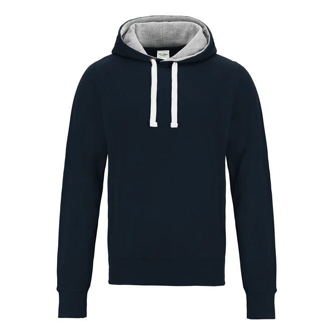 Boční panely pro stylové nošení, overlockové prošití detailů, kapuce z dvojité vrstvy látky, vnitřek kapuce v šedé barvě, ploché bílé šňůrky, postranní kapsy se skrytým vývodem na sluchátka, hluboké žebrované manžety a spodní lem, unisex střih, jednoduchá změna značky, ideální povrch pro potisk.