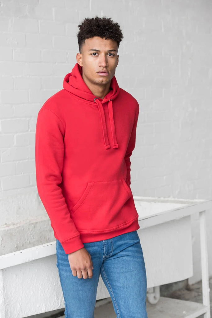 Dvojité prošití detailů, kapuce ze tří panelů, podšívka kapuce z jednoduchého žerzeje, silnější stahovací šňůrky, žebrované manžety a spodní lem, unisex střih, jednoduchá změna značky, ideální povrch pro potisk.