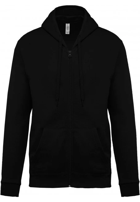 Broušený fleece, vsazené rukávy, trubicovitý střih, zapínání na zip, lemovaná kapuce se šňůrkou v odpovídající barvě, klokaní kapsy, žebrované manžety a spodní lem.