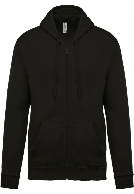 Broušený fleece, vsazené rukávy, trubicovitý střih, zapínání na zip, lemovaná kapuce se šňůrkou v odpovídající barvě, klokaní kapsy, žebrované manžety a spodní lem.
