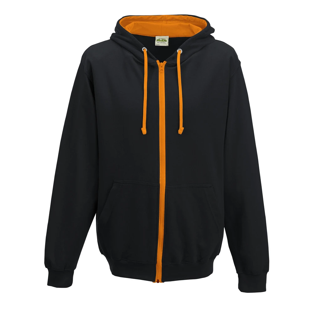 Kontrastní plastový zip po celé délce, dvojité prošití detailů, kapuce z dvojité vrstvy látky, vnitřek kapuce v kontrastní barvě, šňůrky v kontrastní barvě, klokaní kapsa se skrytým vývodem na sluchátka, žebrované manžety a spodní lem, jednoduchá změna značky, ideální povrch pro potisk, unisex.
