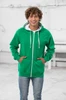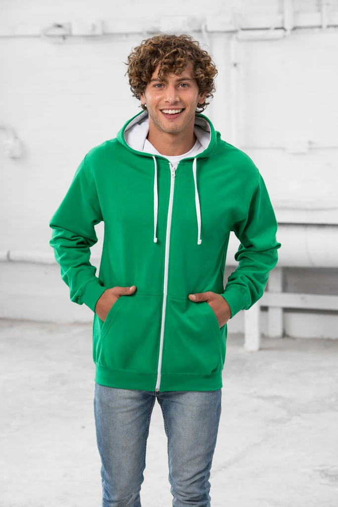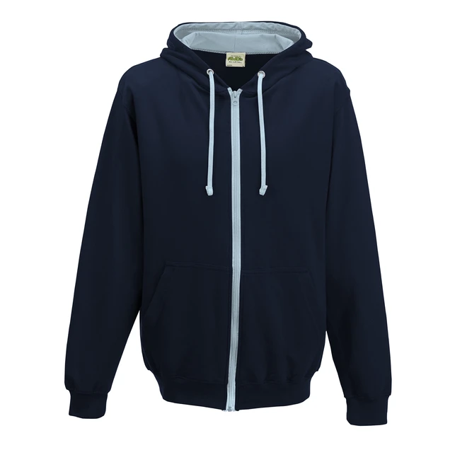 Kontrastní plastový zip po celé délce, dvojité prošití detailů, kapuce z dvojité vrstvy látky, vnitřek kapuce v kontrastní barvě, šňůrky v kontrastní barvě, klokaní kapsa se skrytým vývodem na sluchátka, žebrované manžety a spodní lem, jednoduchá změna značky, ideální povrch pro potisk, unisex.