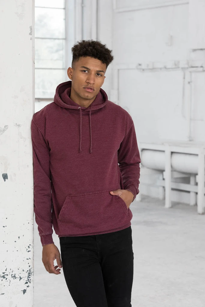 Jemný měkký materiál, sepraný efekt, dvojité prošití detailů, kapuce z dvojité vrstvy látky, šňůrky ve stejné barvě jako mikina, klokaní kapsa se skrytým vývodem na sluchátka, žebrované manžety a spodní lem, unisex střih, jednoduchá změna značky, ideální povrch pro potisk, díky barvení materiálu je každý kus jedinečný.
