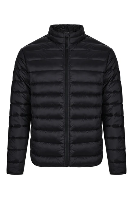 UNISEX vycpaná bunda. 100% Polyamid. 380T. 310 g/m². Odpuzovač vody. Peří jako falešné peří. Celopřední obrácený zip s chráničem brady. 2x boční kapsa na obrácený zip. Zip tón v tónu s plastovou špičkou a polyesterovým tahákem. Šikmá úprava na spodní části a manžetách. Poutko na zavěšení na vnitřní straně límce.